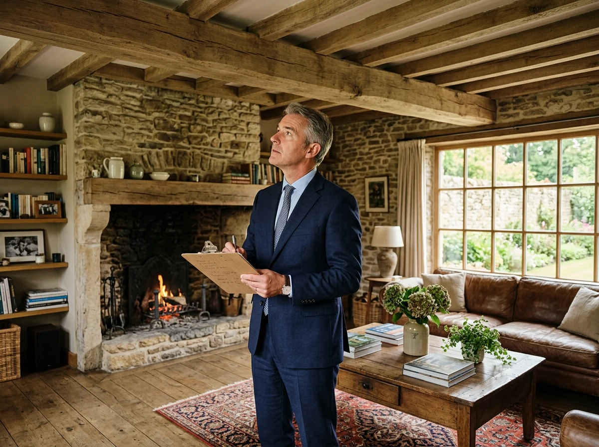 Expert immobilier évaluant les caractéristiques d'une propriété