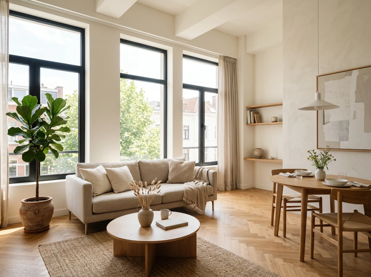 Appartement moderne lumineux avec parquet et grandes fenêtres